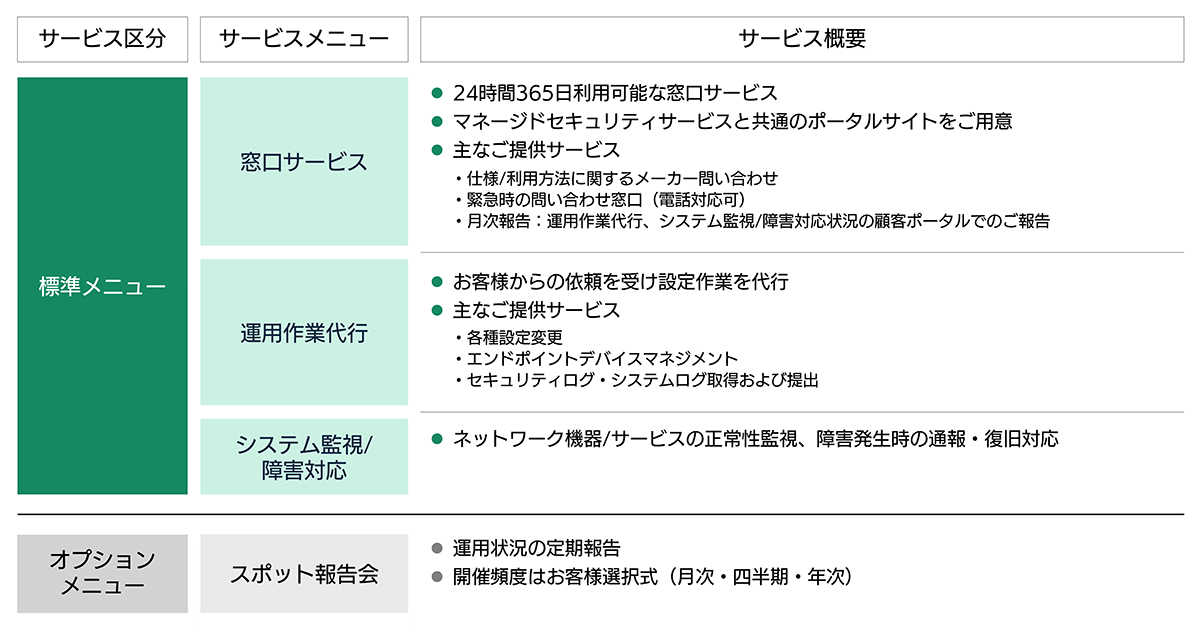 本運用支援は、セキュリティ製品に特化した作業代行サービス「NOZ SecOps」にて提供します。
