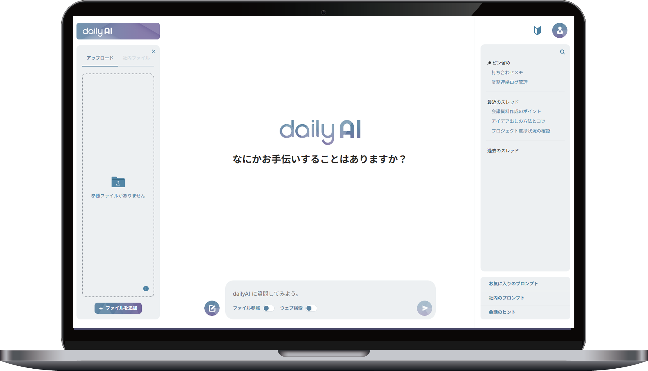 当社の生成AIサービス「dailyAI」は、2025年10月24日よりユーザーインターフェースのデザインを刷新したほか、デフォルトストレージの「フォルダ参照権限管理」機能、「ウェブ検索」機能、「会話スレッド保存」機能を提供開始しました。