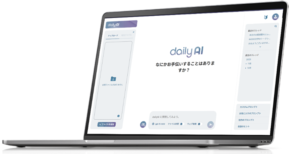 当社の生成AIサービス「dailyAI」は、2026年1月27日より月額500円/ユーザーで利用いただけるminiプランを提供開始しました。コストを抑えたminiプランであれば、生成AIを気軽に素早く導入いただけます。
