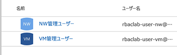 まずは、各リソースが所属するリソースグループの作成、リソースグループに紐づけるユーザーの作成を行います。今回のシナリオでは NW 管理ユーザー、VM管理ユーザー を用意します。