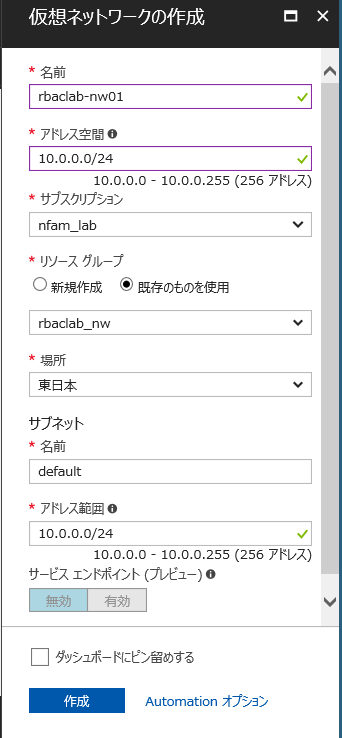 ロールの割り当てが完了したら、まずは NW 管理ユーザーにて、VNETを作成します。