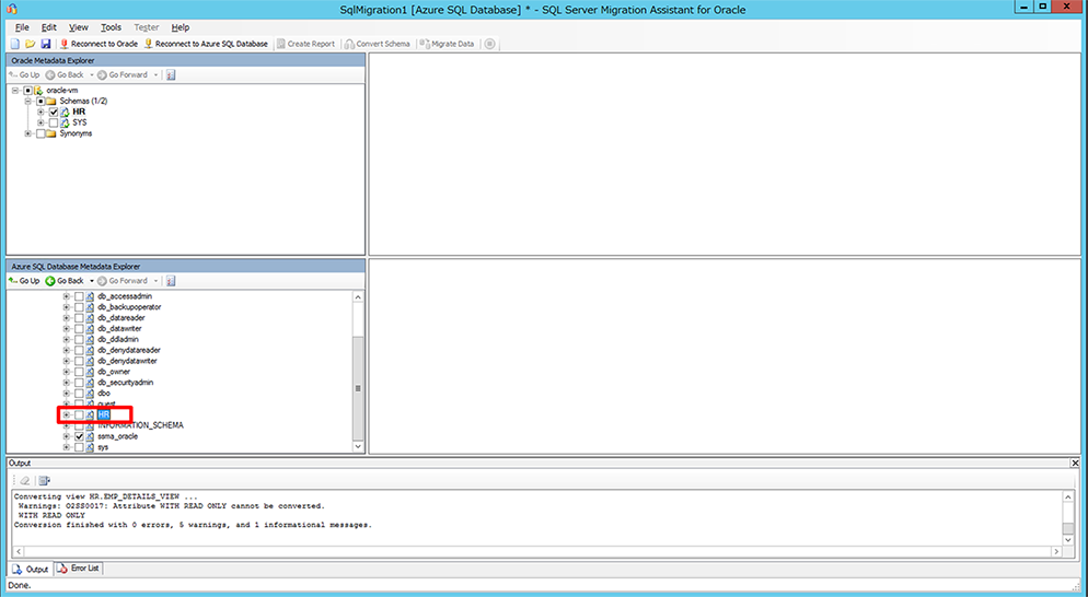 移行元データベースにある Oracle のスキーマを、移行先データベースである SQL Database に合わせて変換します。