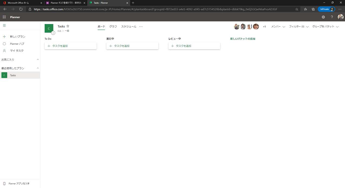 アプリのボタンをクリックすると、Planner の⽅にタスクが登録されました。