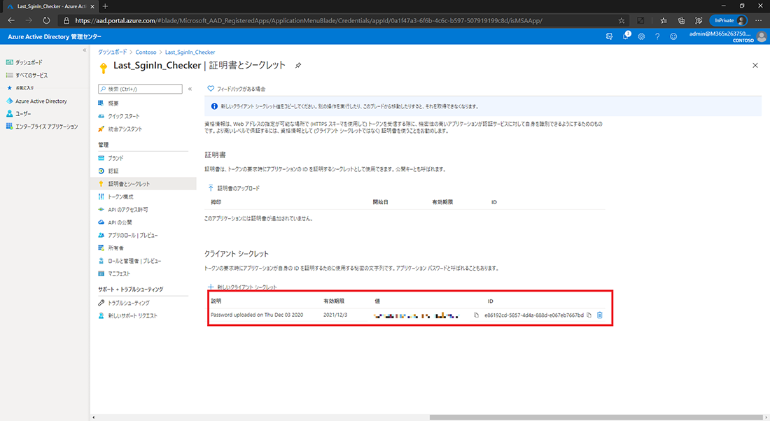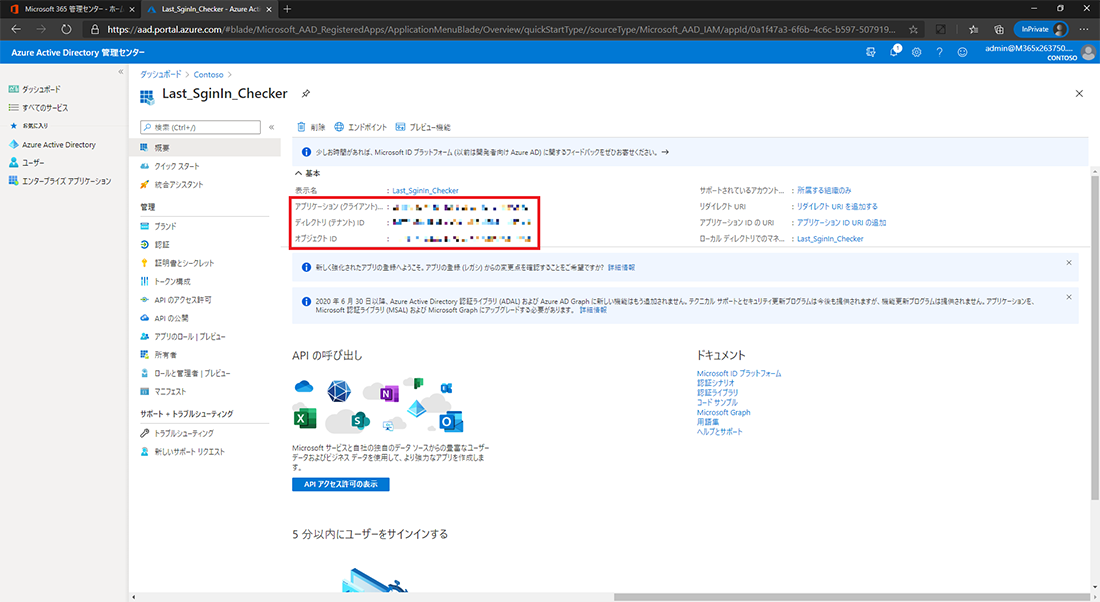 このブログ記事では、「Last_SginIn_Checker」という名前でアプリケーション登録することにします。