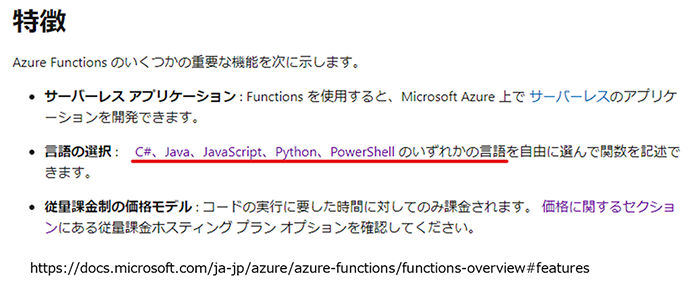 https://docs.microsoft.com/ja-jp/azure/azure-functions/functions-overview#features
