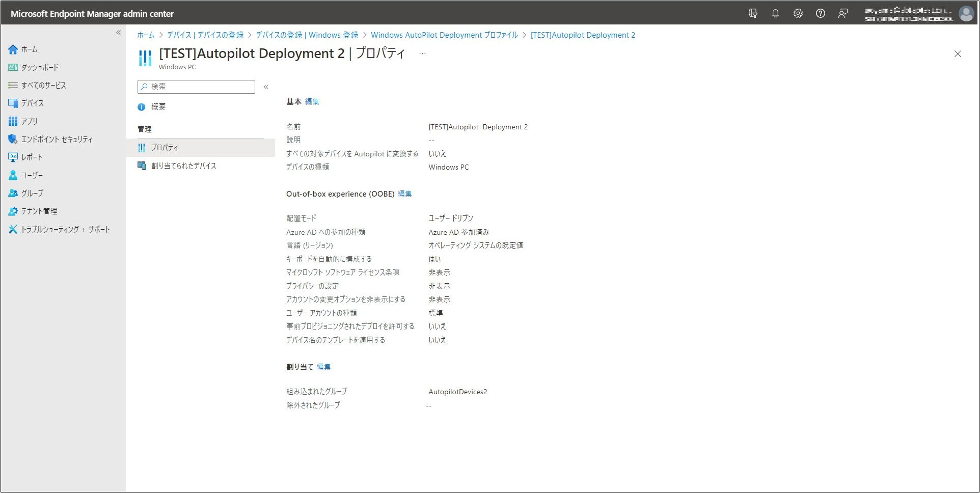まず初めに、Windows のデプロイプロファイルを、インポートしておいた Autopilot デバイスに割り当てます。
