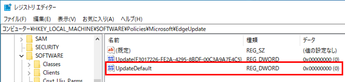 パス : HKEY_LOCAL_MACHINE\SOFTWARE\Policies\Microsoft\EdgeUpdate