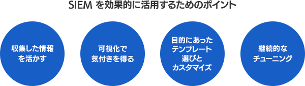 繰り返しになりますが、SIEM は導入しただけでは十分ではありません。その真価を引き出すために、以下の4つのポイントに注目しましょう。