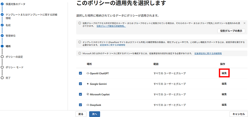 - アンマネージドクラウドAIアプリは Microsoft Edge のみでしか使用できなくなる。