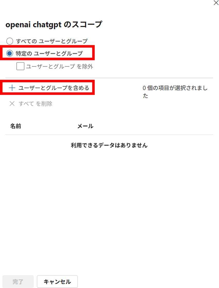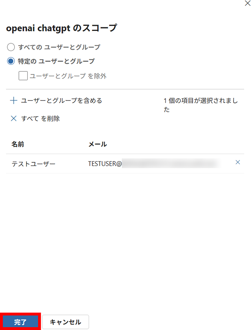 11. 対象のユーザー/グループを選択し、[完了] をクリックします。