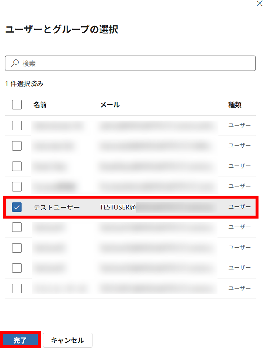 12. 対象のユーザーが表示されていることを確認し、[完了] をクリックします。