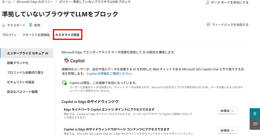 - Microsoft Edge for Business を制御ポイントとして、アンマネージドクラウドAIアプリへの機密情報のアップロードを制限するポリシーを作成することが可能です。
