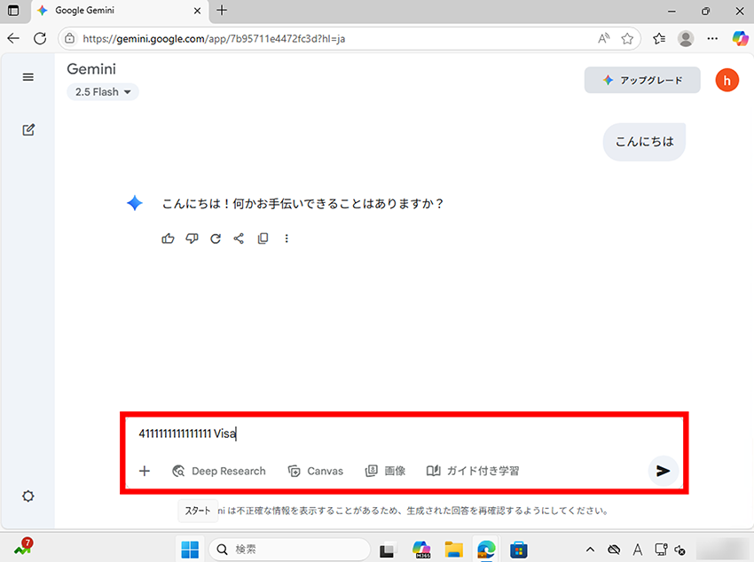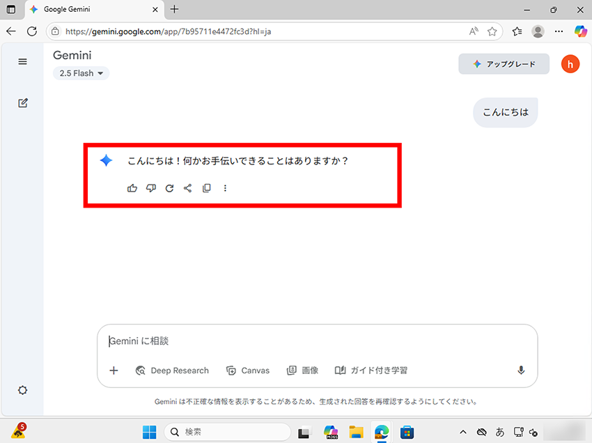 1. Microsoft Edge より Gemini (https://gemini.google.com/app?hl=ja) にアクセスします。