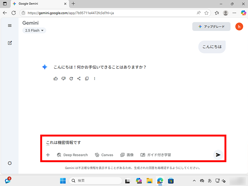 - ファイルのアップロードなどは制御できないため、ファイル内に機密情報がある場合は外部AIに機密情報が共有されてしまう。