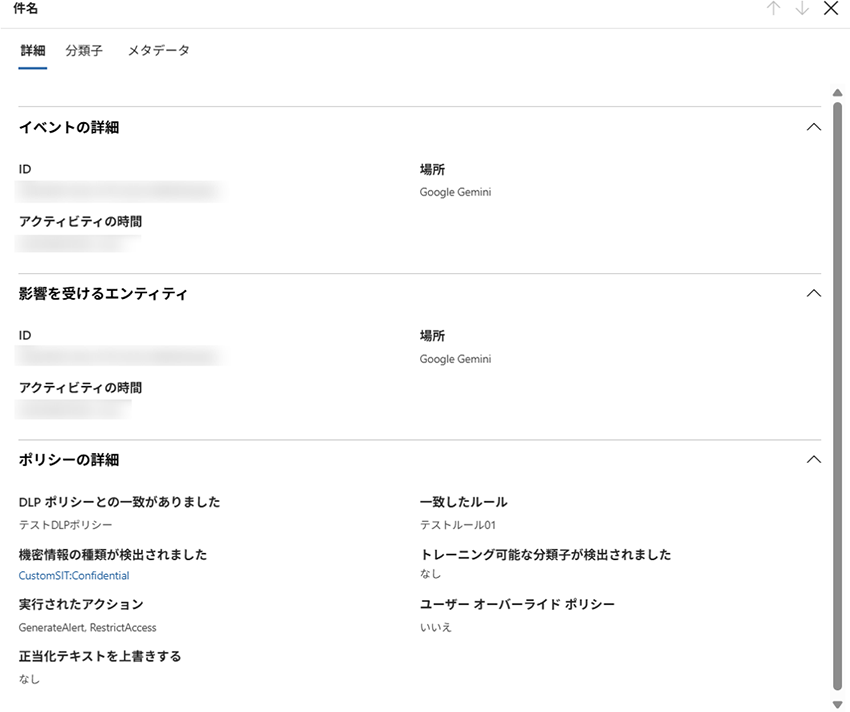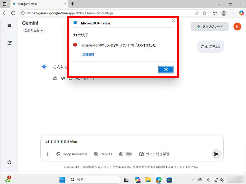 5. 設定した機密情報の種類に該当する文字列を入力してみます。