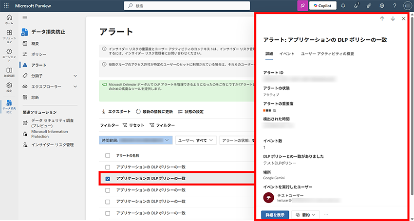 ■ [ソリューション] - [データ損失防止] - [アラート]