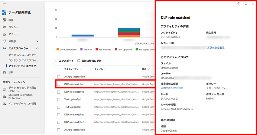 ■ [ソリューション] - [データ損失防止] - [エクスプローラー] - [アクティビティ エクスプローラー]