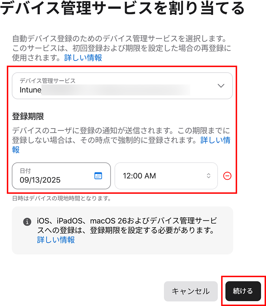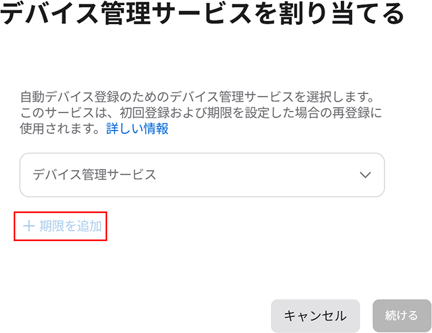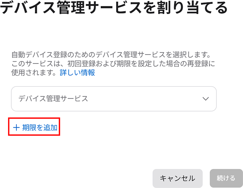 3. デバイス管理サービスを割り当てる画面が出てくるので、[期限を追加] をクリックします。