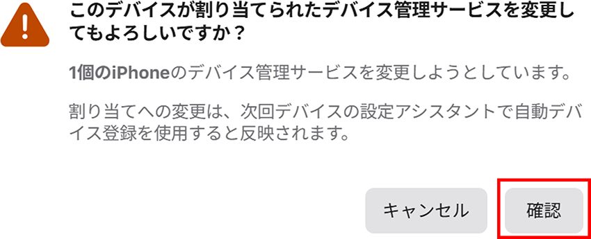 5.割り当てを変更する旨が表示されるため、[確認] をクリックします。