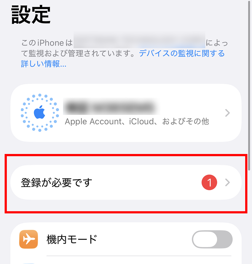 1. ABMにてMDM移行を設定すると、デバイスへ通知が表示されます。