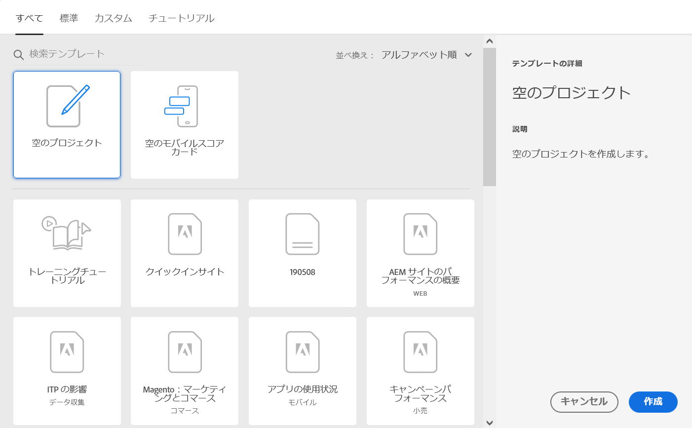 ここでは「空のプロジェクト」を選んで、作成を選択します。
