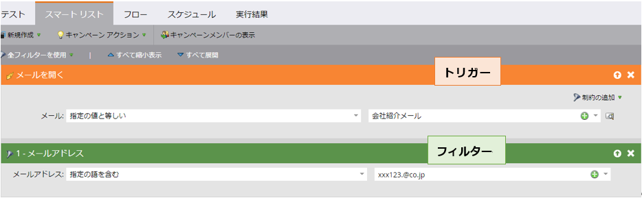 メールを送信する対象者を以下のトリガーとフィルターを組み合わせて条件を指定し、具体的に絞り込む機能です。
