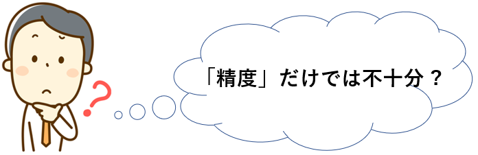 評価と聞いて多くの人がまず思い浮かべる言葉は精度ではないでしょうか。精度 90% を達成した、などと使われます。精度とは何でしょうか。精度 90% であれば、何かしら予測を 10 回実施したときに 9 回正解したことを意味します。非常に分かり易く、それで説明が十分な場合もあるでしょう。しかしそれだけでは不十分で、誤解を与えたりすることもあります。例えば製品の異常を検知したい場合を考えてみましょう。正常な製品のデータは集めるのが簡単であるのに対し、異常な製品についてはデータを集めるのが難しい場合があります。そのため、評価用に用意したデータセットには正常データが 90 個に対し、異常データは 10 個しか含まれていないとします。極端な例ですが、この場合全て正常と予測した場合、精度は 90% となります。計算上は正しいですが、 90% と聞いてイメージする良いモデルではないことがわかるかと思います。これでは精度という指標では意味を持ちませんね。別の例として、評価用データセットに正常データを 50 個、異常データを 50 個 のように同数程度含む場合を考えます。この場合、全て正常と予測するようなモデルでは精度は 50% と低くなるため、精度という評価指標でもある程度適切な評価ができると考えられます。