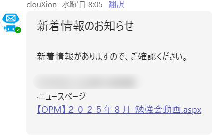 OnePortalは Teams と連携し、社内ポータル上の掲示板やファイルなどの更新情報を Teams 通知でお知らせすることができます。OnePortalに記事を公開すると Teams のチャットにて「新着情報のお知らせ」通知が自動的に送信されるため、社内へスピーディーに情報を伝えることが可能です(詳細はこちら)。このお知らせ機能を使用することで、記事を見てもらえる確率が上がりました。