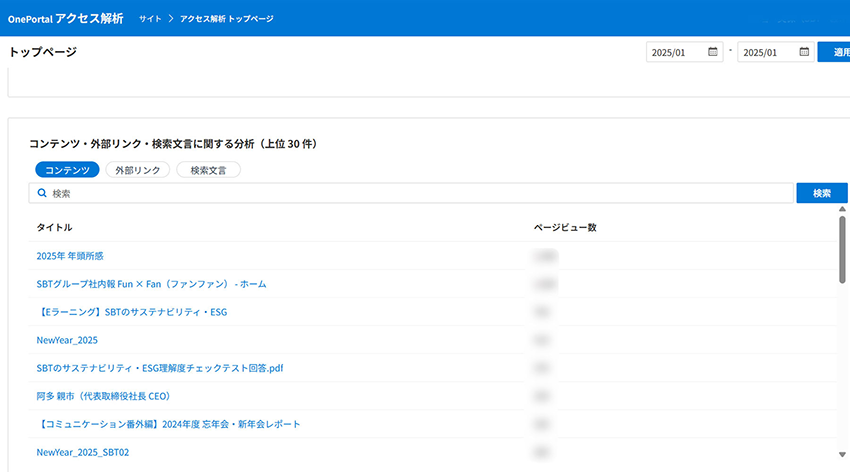 OnePortalでは独自のアクセス解析機能が標準機能として提供されており、「どの部署からのアクセスが多いのか」ということや「誰が見てくれているのか」を把握することができます。おかげでサイトの傾向がつかみやすくなりました。現在は“より多くの人に見てもらえる記事にするには、どのような記事を書けばよいか”と考えながら、効果的なサイト運用を目指して日々奮闘しています。